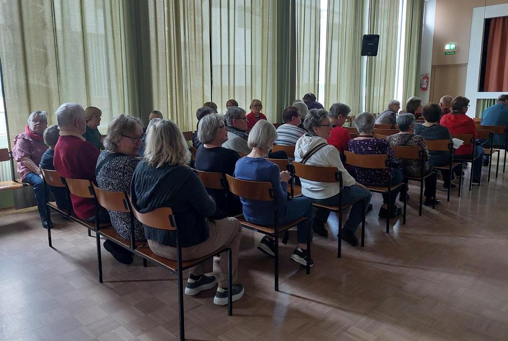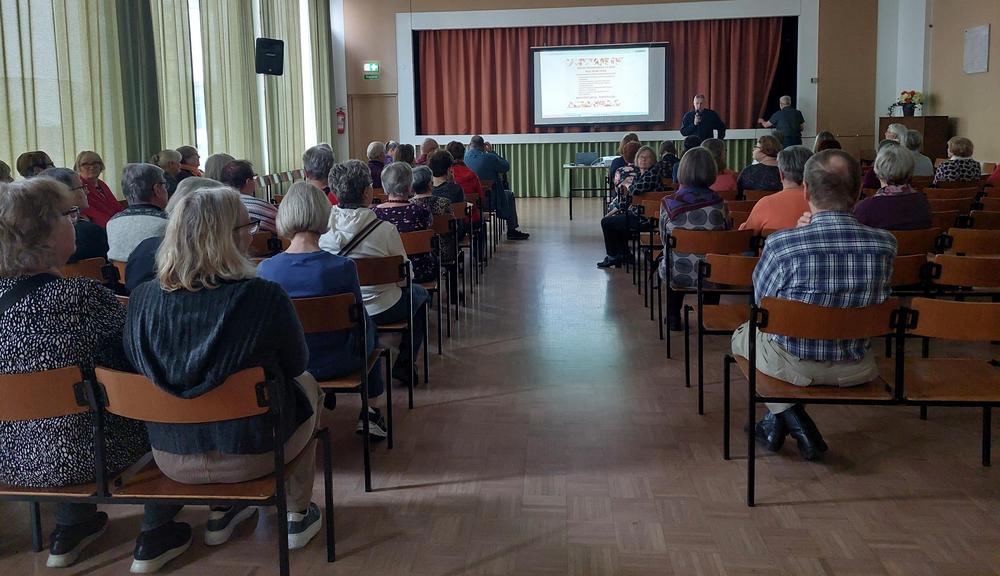 Tänään kuulaassa syksysäässä kokoontui Raittiustalolle liki 90 KVESiläistä kuulemaan mm Hammashohteen hammaslääkäri Pekka Mutasen esitelmää ikääntymisestä ja suun terveydestä.