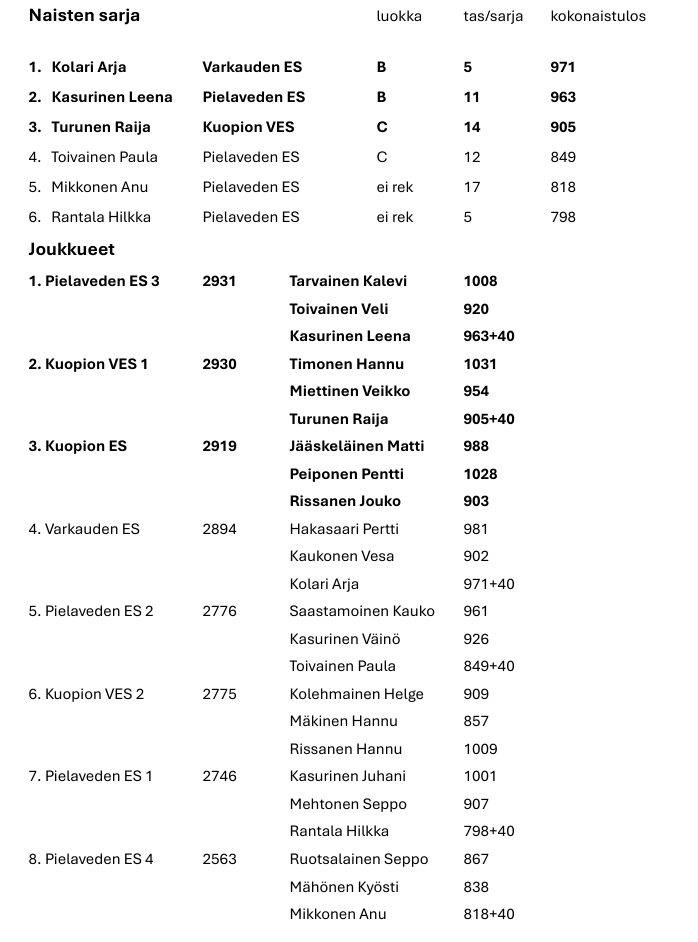 Katso lisätietoa ja kisatunnelmia täältä: https://kuopionpiiri.elakkeensaajat.fi/toiminta/kilpailut/kilpailukuvat-ja-tulokset/2025/