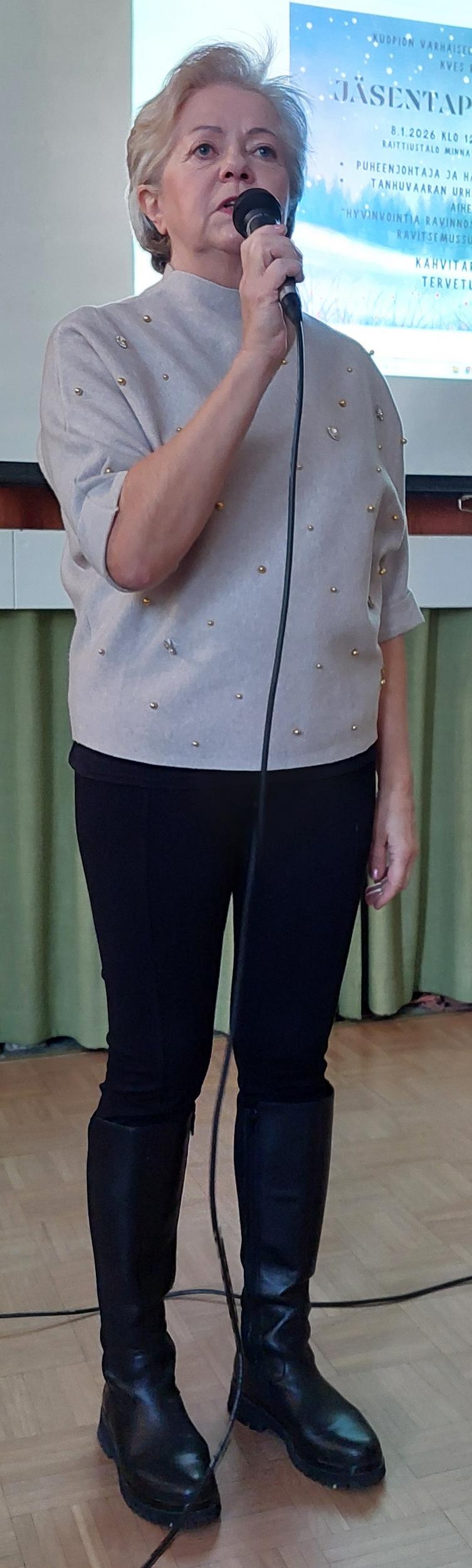Kirpeässä pakkassäässä oli Raittiustalolle kokoontunut salin täydeltä KVESläisiä tutustumaan paitsi uuteen hallitukseen myös uusiin ravitsemussuosituksiin. Hallituksen ja tiimien jäsenet esittäytyivät ja esittelivät itsensä ja ravitsemussuosituksista kertoi Tanhuvaaran asiantuntija Mirka Kupiainen. Ja lopuksi nautittiin pullakahvit.
