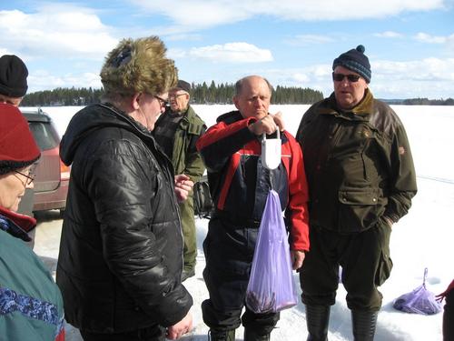 Rannasta ponkaisi jäälle aamulla yhdeksän maissa 19 iloista ja reipasta kalamiestä jääkairat ja reput olalla keikkuen. Osa porukasta uskoi suurten kalojen lymyilevän kaukana siintävän saarirykelmän ympärillä ja suuntasi heti matkansa sinne, osa muisti vanhan sanonnan, ettei kannata mennä merta edemmäksi kalaan ja jäi jäätien tuntumaan lähelle rantaa. Yhteensä kalaa nousi kymmenistä kairatuista avannoista 15,4 kg.