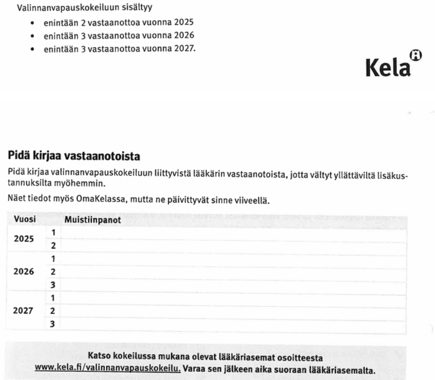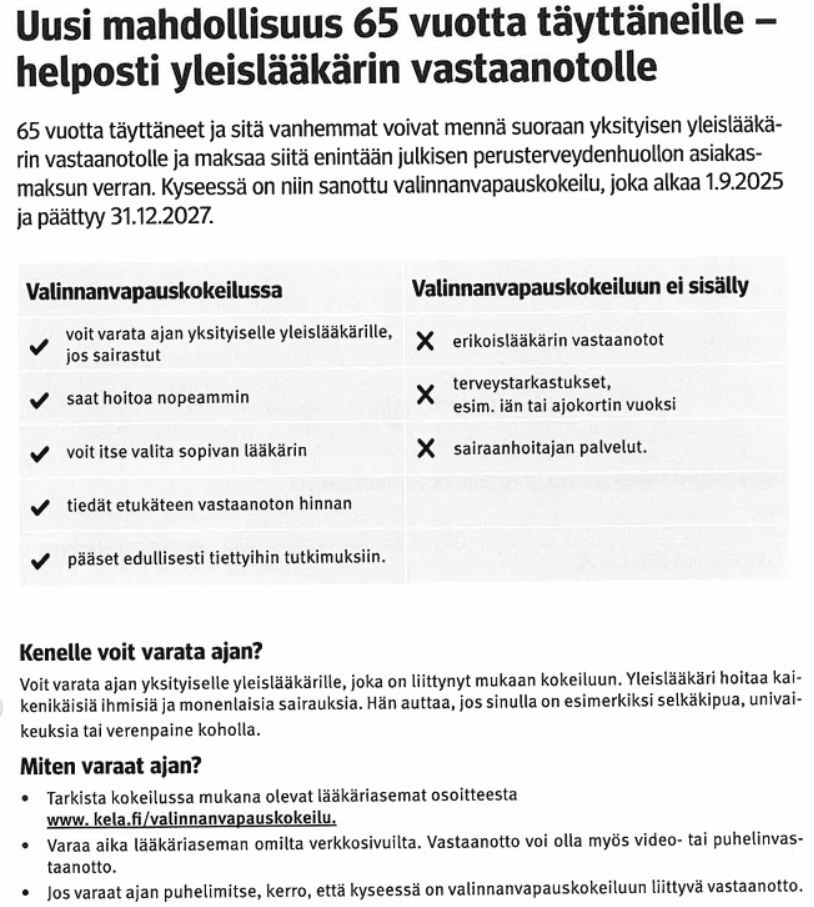 Yli 65-vuotiaiden valinnanvapauskokeilu
