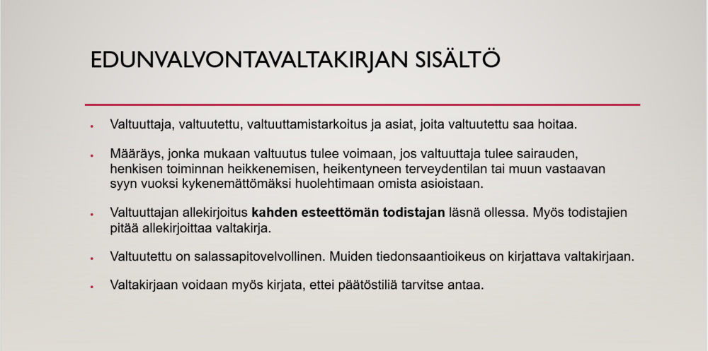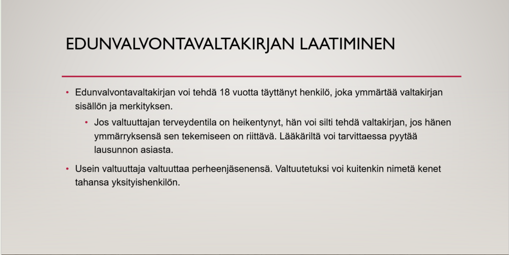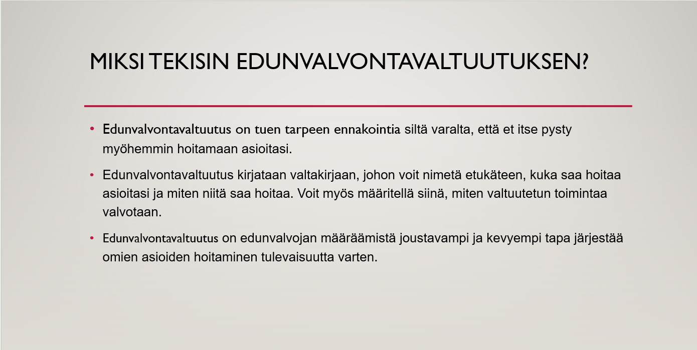 5.2.2026 jäsentapaamisessa asianajaja Esa Airaksinen esitti lyhyen tietoiskun edunvalvontavaltakirjan laatimisesta ja sisällöstä.